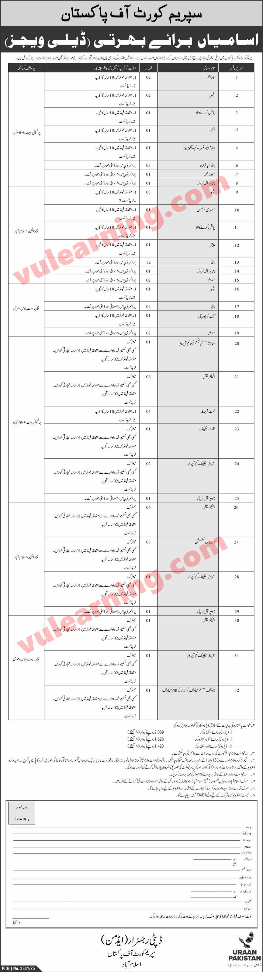 Supreme Court Jobs 2025 Application Form Download for Mali, Electricians, Lift Operators, Mechanics & Others Job Ad shown on this page is taken from Jang Newspaper on 25-10-2025