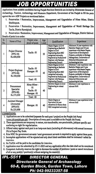 Advertisement of Tourism, Archelogy & Museums Department Punjab Govt Jobs 2025 Apply Online-295182