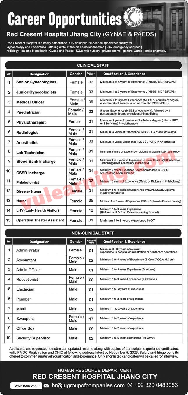 Red Crescent Hospital Jhang City Jobs 2025 for Nurses, LHV, Receptionists, Sweepers, Office Boys & Others Job Ad shown on this page is taken from Express Newspaper on 25-10-2025