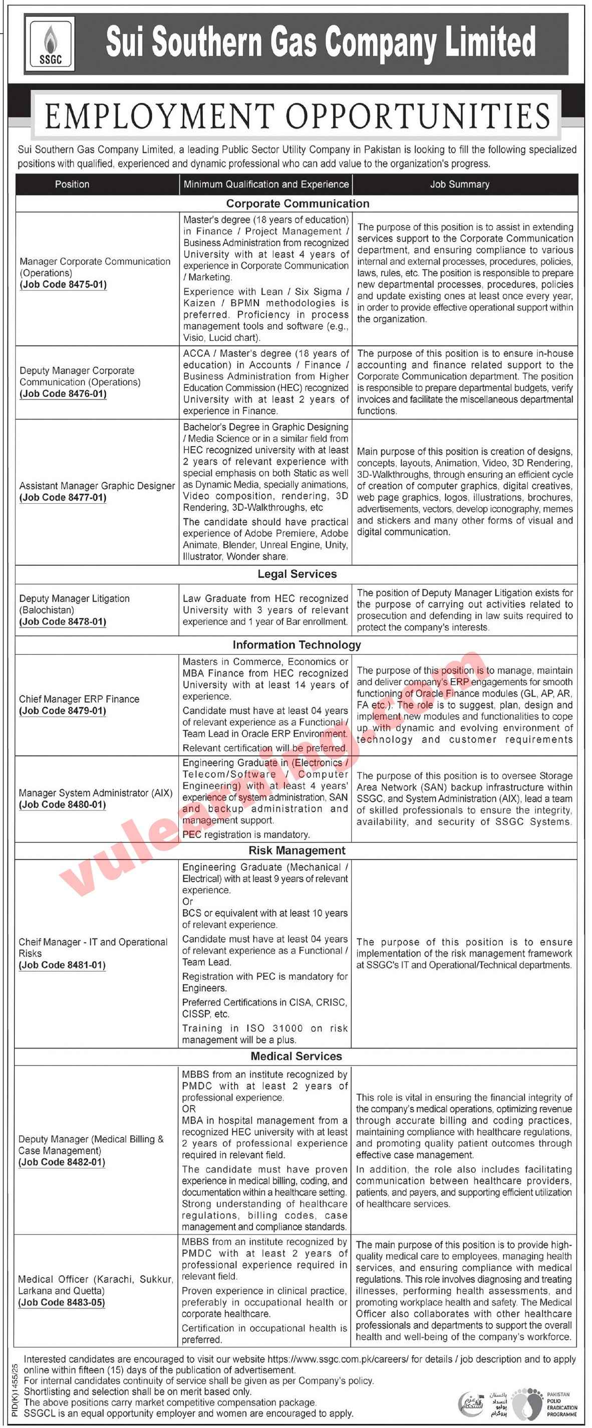 Advertisement of SSGC Jobs 2025 Apply Online Sui Southern Gas Company Limited Latest Advertisement-295198