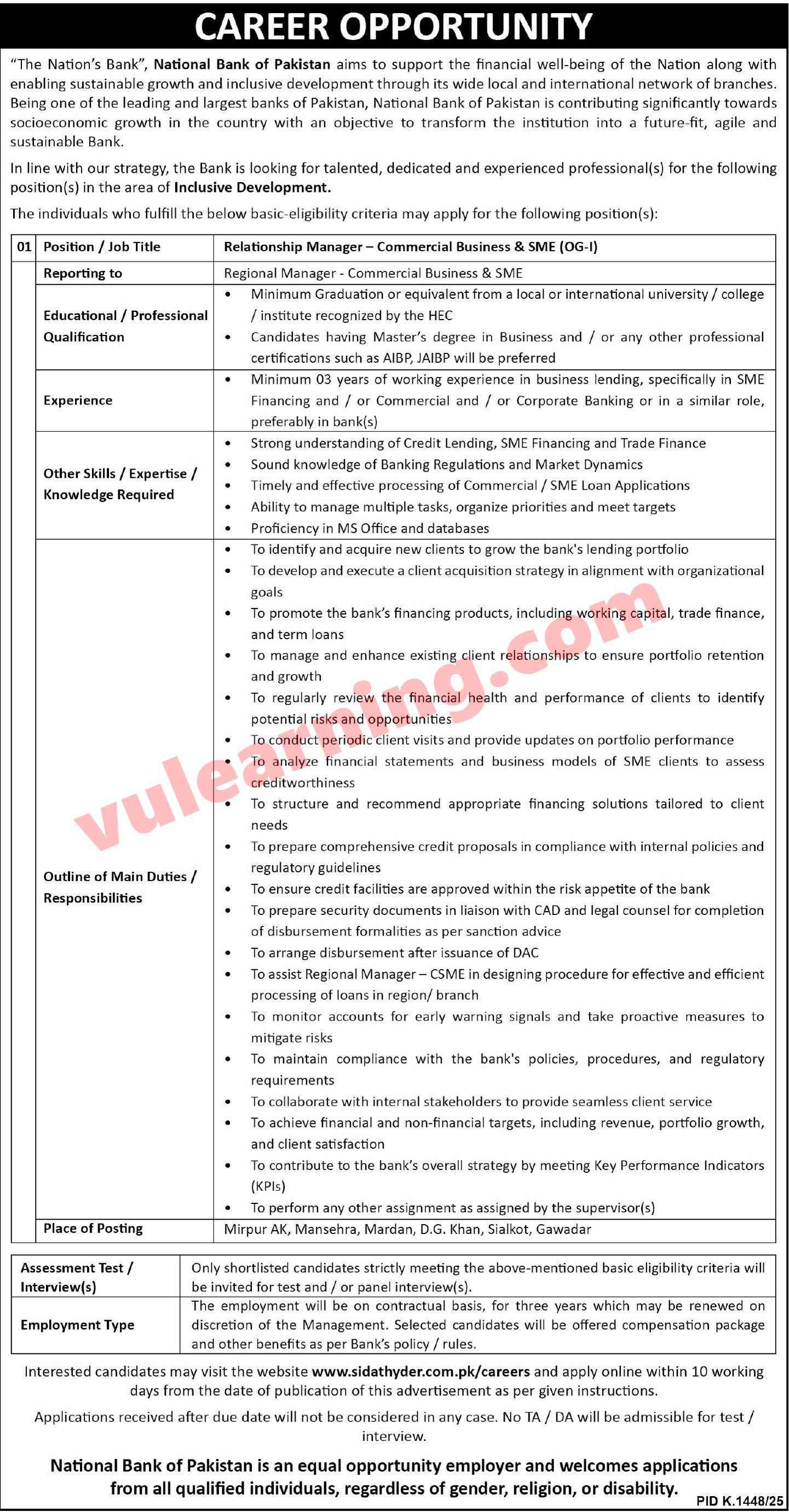 National Bank NBP Jobs 2025 Apply Online for Relationship Managers in Multiple Cities Job Ad shown on this page is taken from Express Newspaper on 26-10-2025