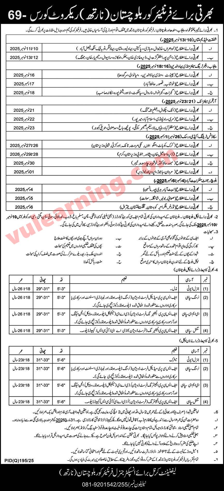 Frontier Corps FC Jobs 2025 FC Balochistan (North) Recruitment Course 69 Advertisement Job Ad shown on this page is taken from Express Newspaper on 04-11-2025