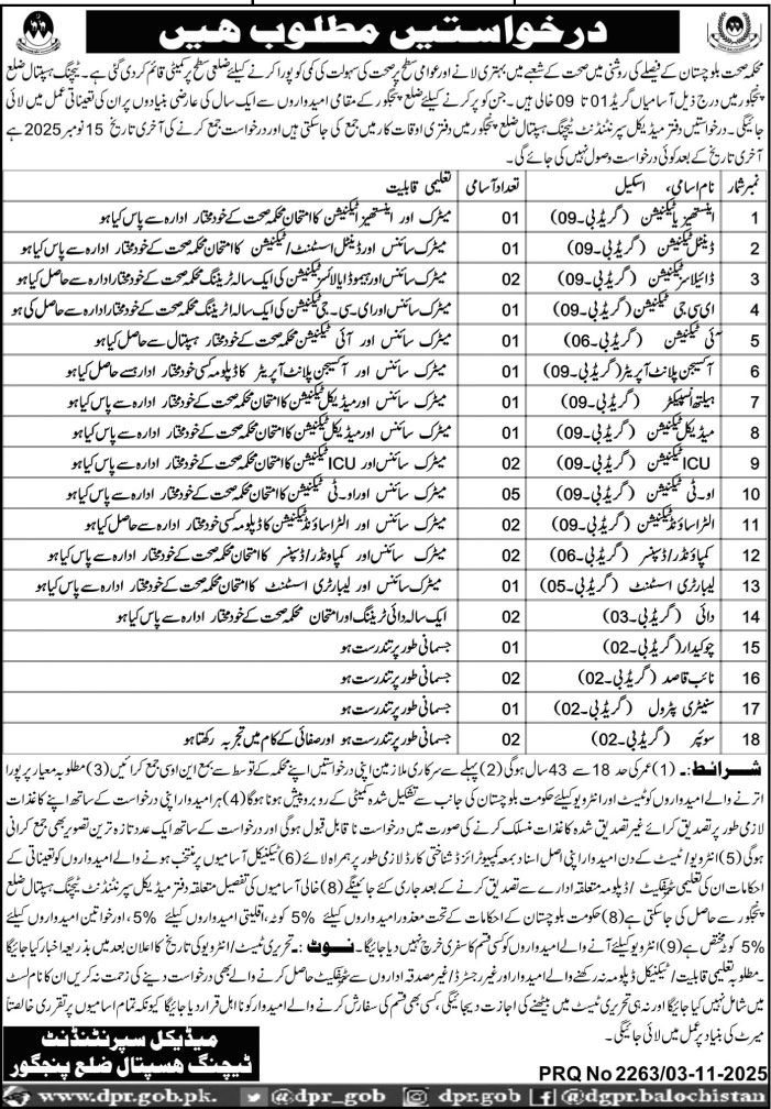 Health Department District Teaching Hospital Jobs 2025 for BPS-01 to BPS-09 Vacancies Advertisement Latest Job Ad shown on this page is taken from Jang Newspaper on 04-11-2025