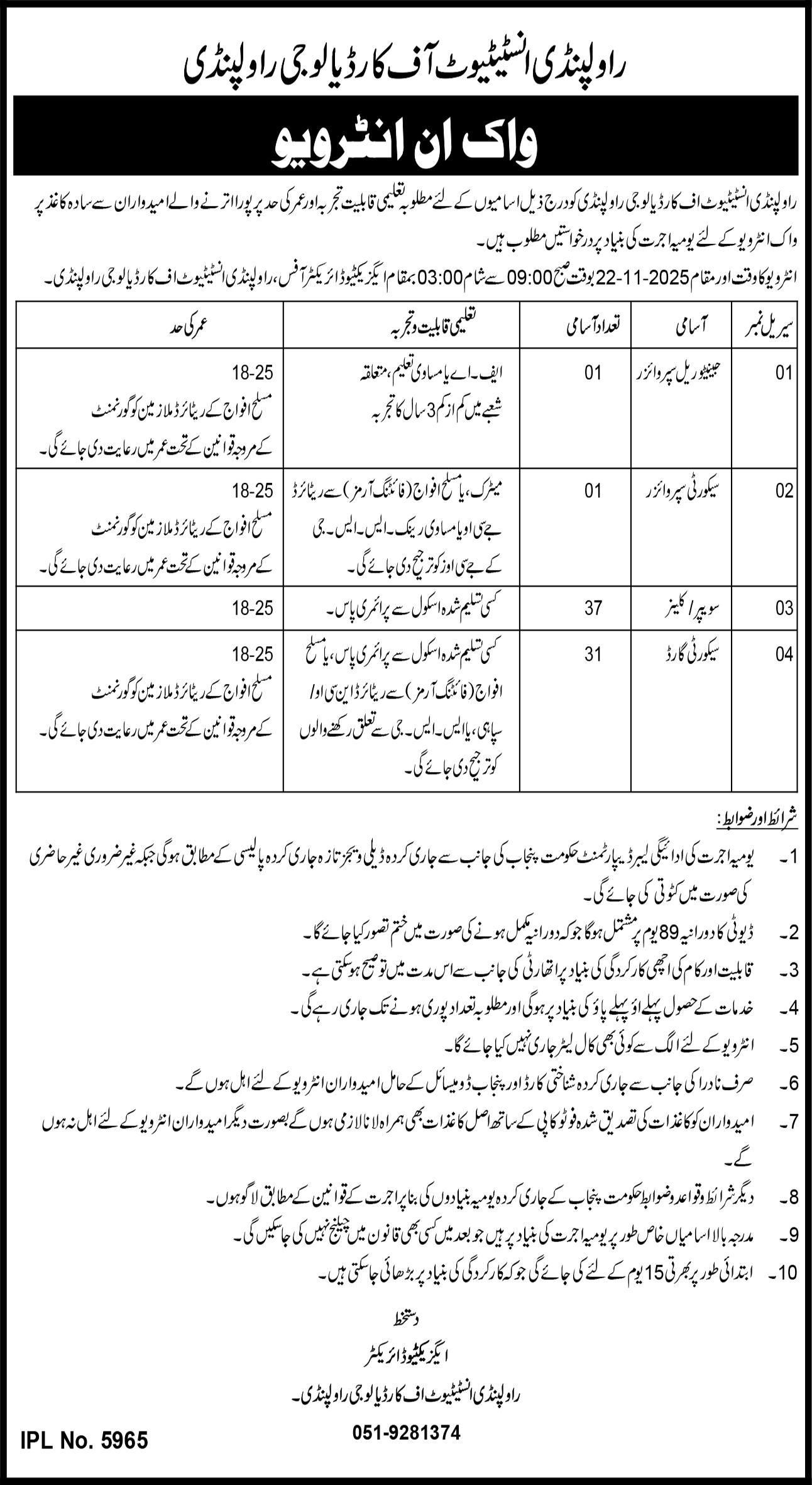 Rawalpindi Institute of Cardiology RIC Rawalpindi Jobs 2025 for Security Guards, Sweepers & Others Job Ad shown on this page is taken from Express Newspaper on 07-11-2025