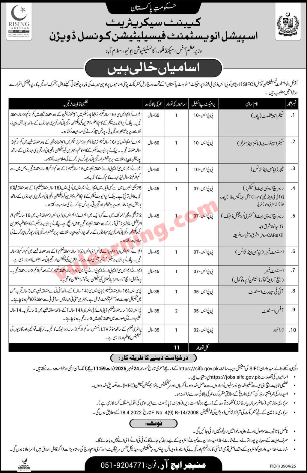 Special Investment Facilitation Council Islamabad Jobs 2025 Apply Online SIFC Cabinet Secretariat Latest Job Ad shown on this page is taken from Express Newspaper on 09-11-2025