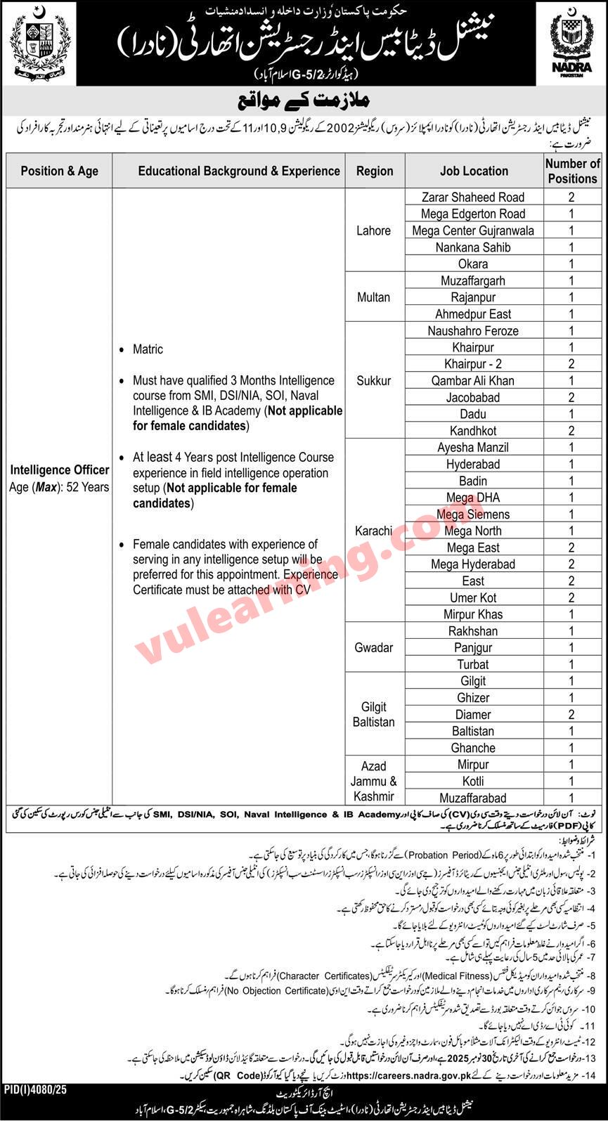Intelligence Officer Jobs in NADRA 2025 Apply Online National Database & Registration Authority Latest Job Ad shown on this page is taken from Express Newspaper on 16-11-2025