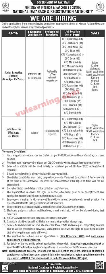 NADRA Jobs 2025 Apply Online for Female Junior Executives & Lady Searchers Latest Job Ad shown on this page is taken from The News Newspaper on 16-11-2025