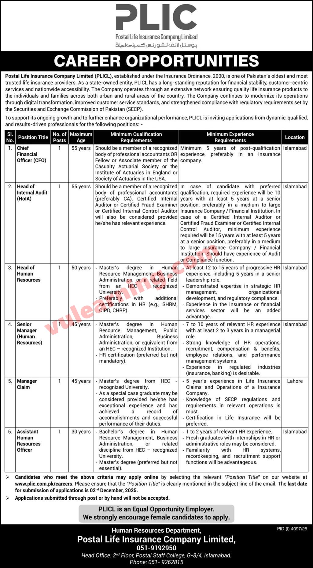 Postal Life Insurance Company Limited Jobs 2025 PLICL Apply Online Job Ad shown on this page is taken from The News Newspaper on 16-11-2025