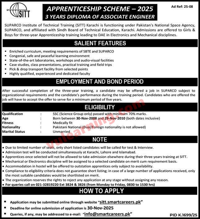 Advertisement of SUPARCO Apprenticeship 2025 Training Scheme SITT Apply Online DAE Jobs Latest-295285