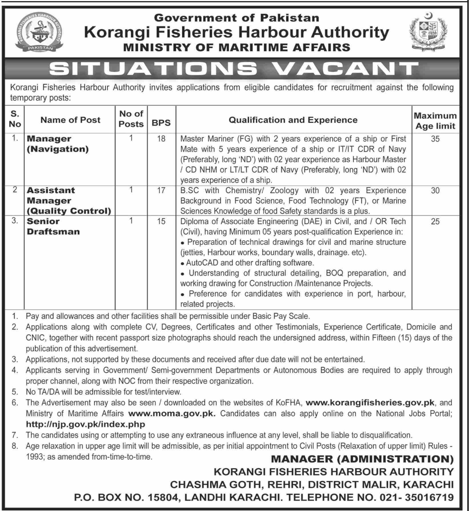 Advertisement of Korangi Fisheries Harbour Authority Jobs 2025 Apply Online Ministry of Maritime Affairs-295297