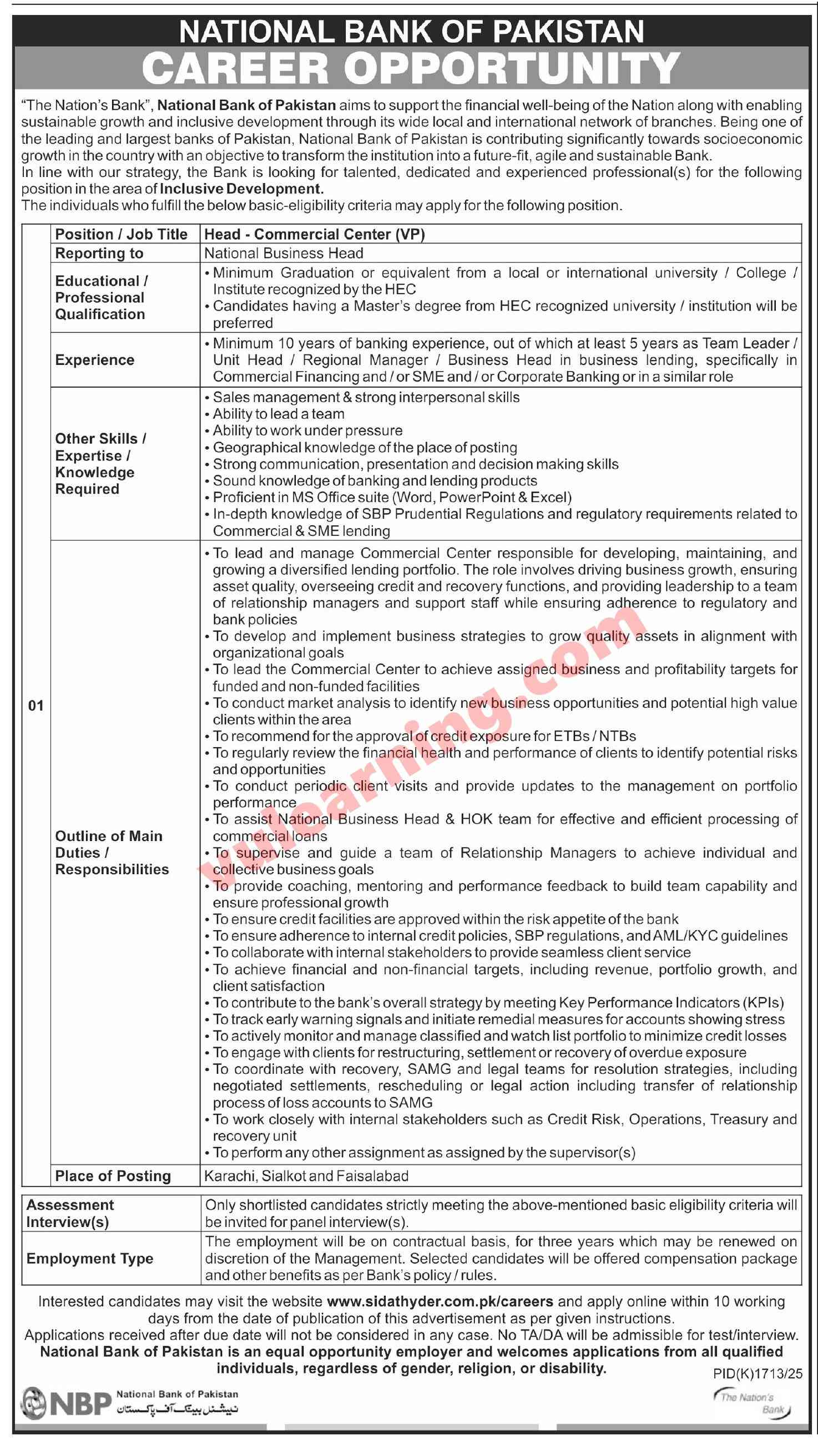 Advertisement of National Bank of Pakistan Jobs 2025 NBP Apply Online for Multiple Cities-295301