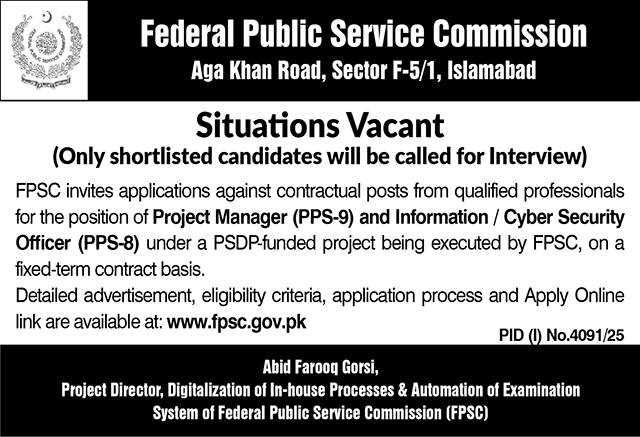 Federal Public Service Commission FPSC Jobs 2025 Apply Online for PSDF Funded Project Job Ad shown on this page is taken from Nawa-e-waqt Newspaper on 16-11-2025