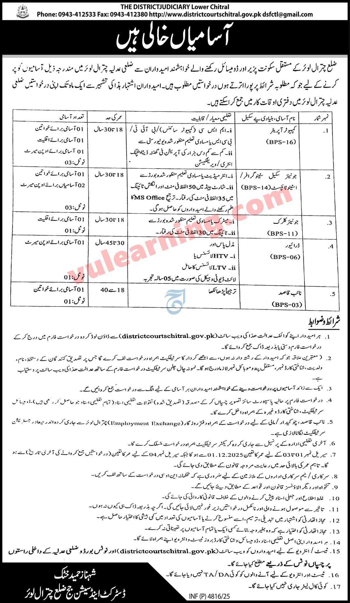 Advertisement of District Courts Jobs 2025 for Computer Operators, Jr Stenographers, Jr Clerk, Driver & Naib Qasid-295307