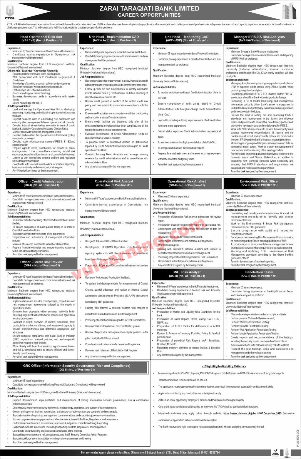 Advertisement of ZTBL Jobs 2025 Apply Online for OG-I / OG-II Officers & Others Zarai Taraqiati Bank Ltd-295317
