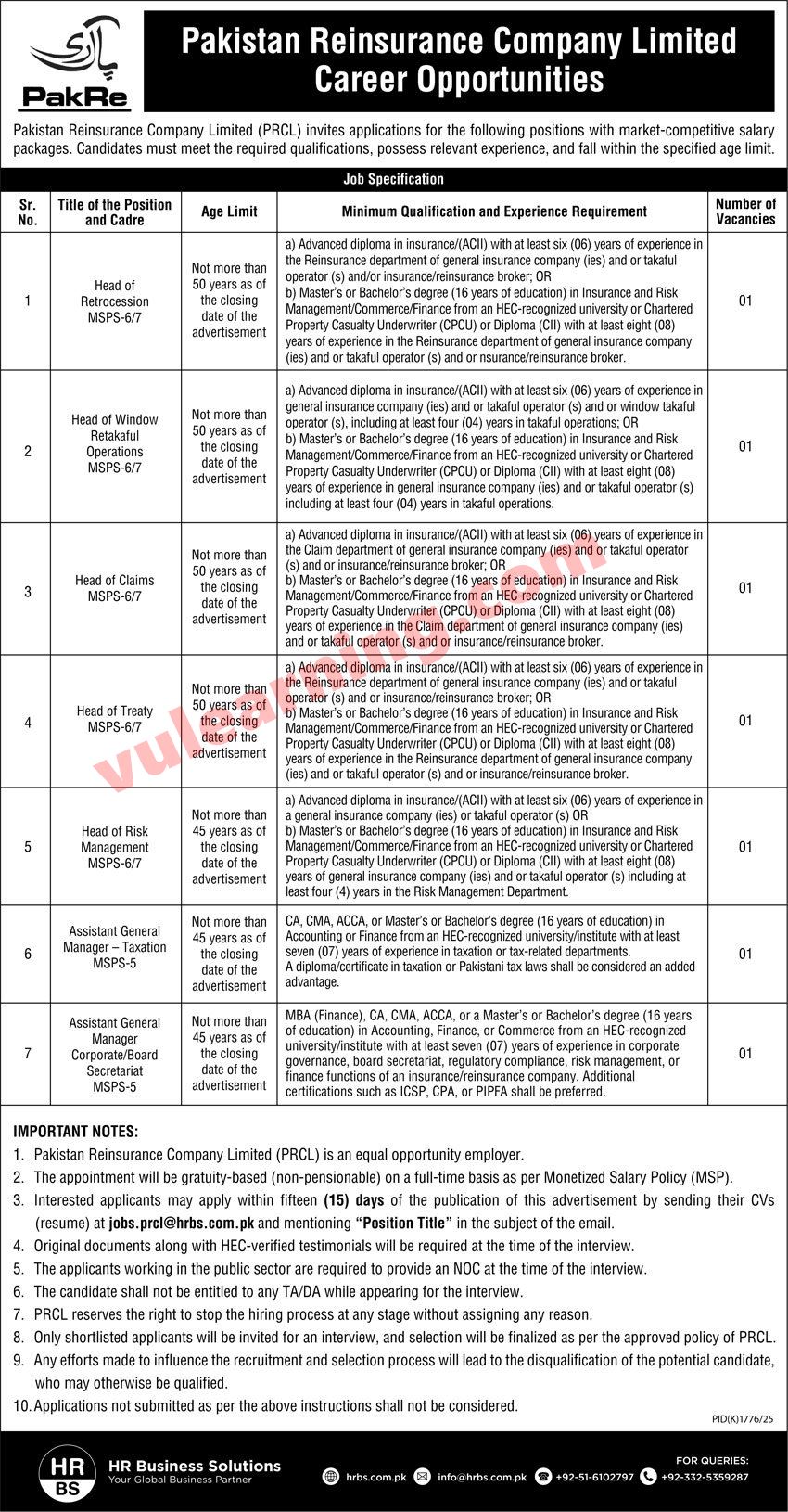 PRCL Jobs 2025 PakRe Pakistan Reinsurance Company Limited Career Opportunities Job Ad shown on this page is taken from Express Newspaper on 23-11-2025