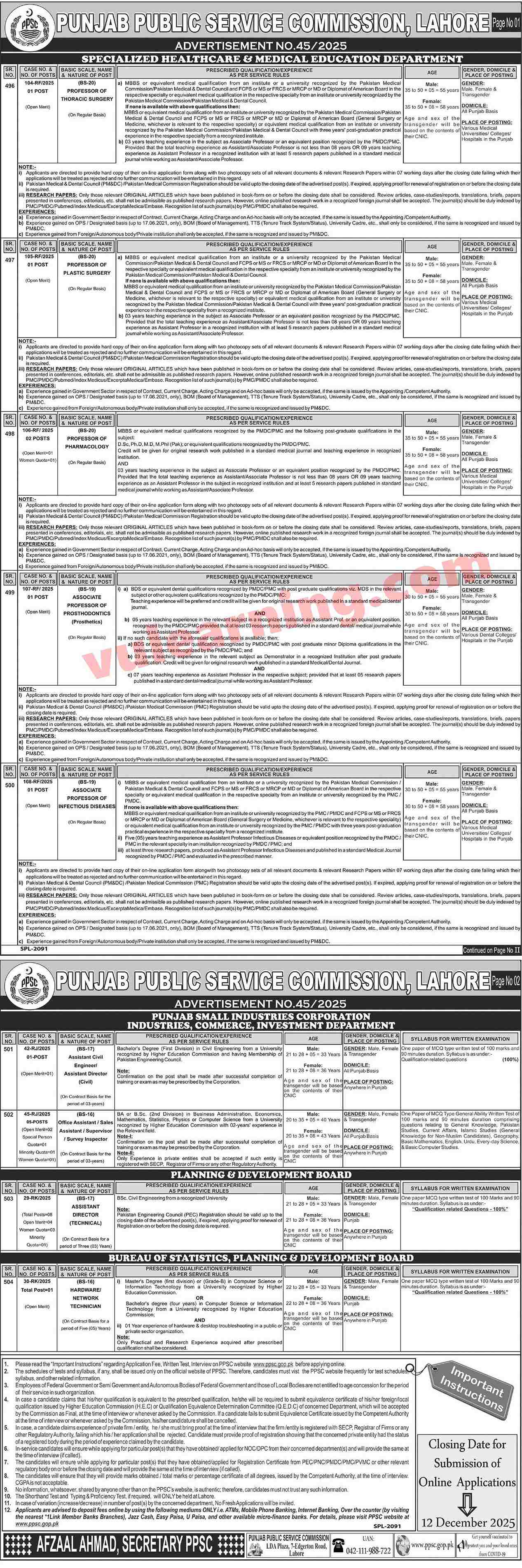 PPSC Jobs 2025 Apply Online for Assistant Directors, Office Assistants & Others Advertisement No. 45/2025 Latest Job Ad shown on this page is taken from Jang Newspaper on 27-11-2025