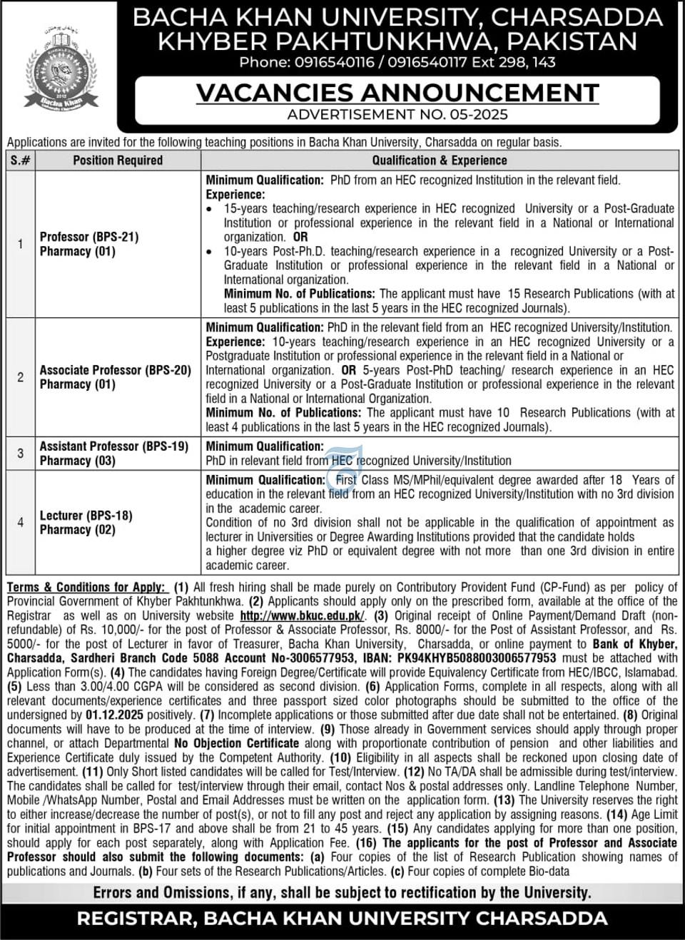Bacha Khan University Charsadda Jobs 2025 for Teaching Faculty (Lecturers, Assistant Professors & Others) Job Ad shown on this page is taken from Express Newspaper on 27-11-2025
