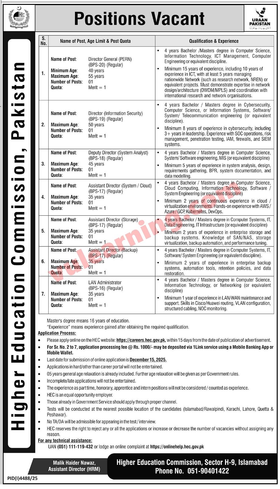 HEC Jobs 2025 Apply Online Higher Education Commission of Pakistan for Assistant Directors & Others Job Ad shown on this page is taken from Express Newspaper on 30-11-2025