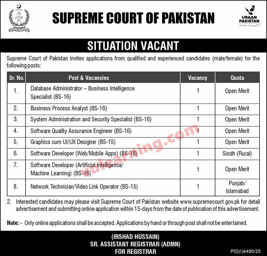 Advertisement of Supreme Court of Pakistan Jobs 2025 in Islamabad Apply Online supremecourtgovpk -295357