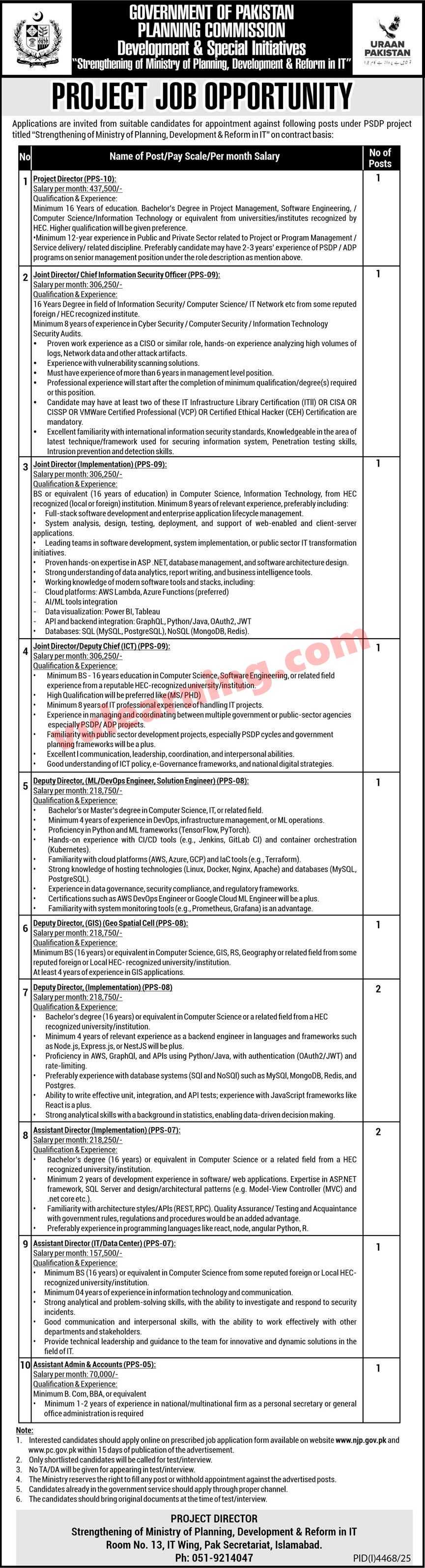 Advertisement of Planning Commission Jobs 2025 Apply Online for Strengthening of Ministry of Planning & Development & Reform in IT Project Vacancies-295360