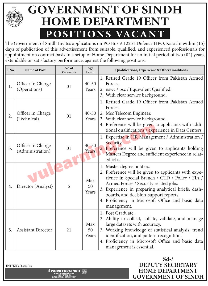 Home Department Government of Sindh Jobs 2026 for Assistant Directors & Others Job Ad shown on this page is taken from Express Newspaper on 01-01-2026