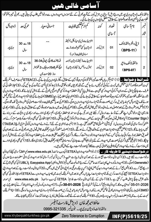 Wildlife Department Jobs 2026 for Wildlife Watchers & Deputy Ranger Wildlife Job Ad shown on this page is taken from Express Newspaper on 01-01-2026
