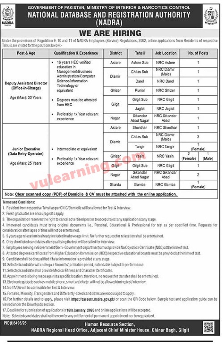 Advertisement of NADRA Jobs 2026 for Jr Executives (Data Entry Operators) & Deputy Assistant Directors (Office Incharge)-295422
