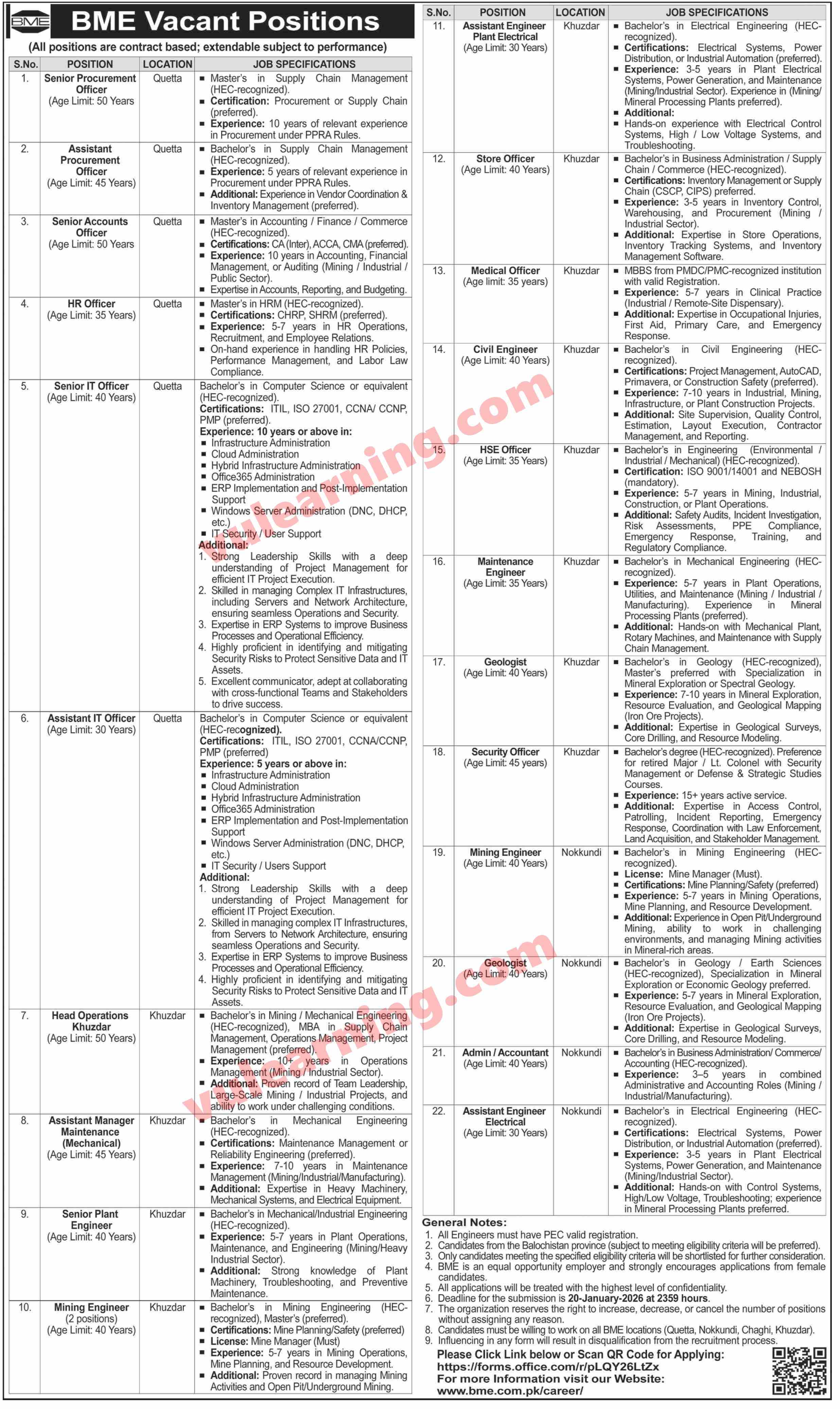 Bolan Mining Enterprises Jobs 2026 Apply Online for Accounts / IT Officers, Mining Engineer & Other BME Latest Job Ad shown on this page is taken from Dawn Newspaper on 04-01-2026