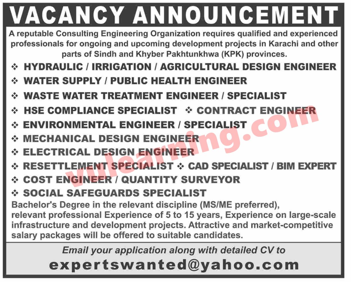 Consulting Engineering Organization Jobs in Pakistan 2026 Design Engineers & Others Latest Job Ad shown on this page is taken from Dawn Newspaper on 04-01-2026