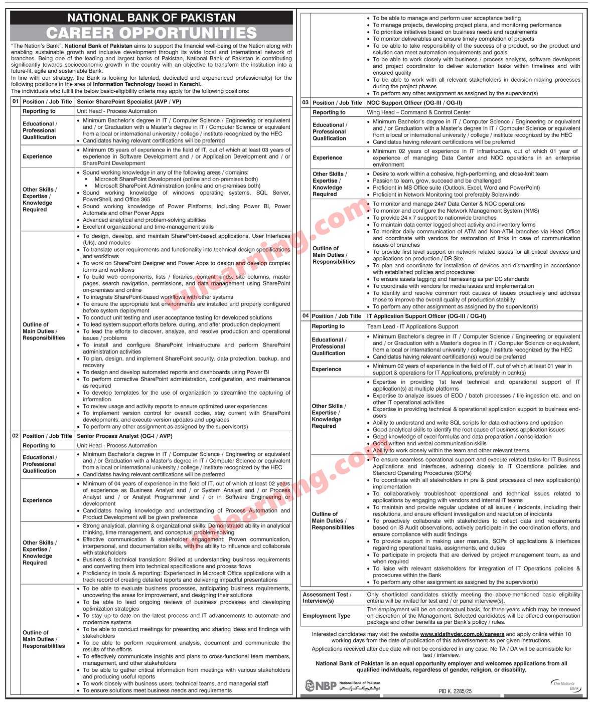 Advertisement of National Bank of Pakistan Jobs 2026 Apply Online for OG-III / OG-II Officers & Others NBP Latest-295444