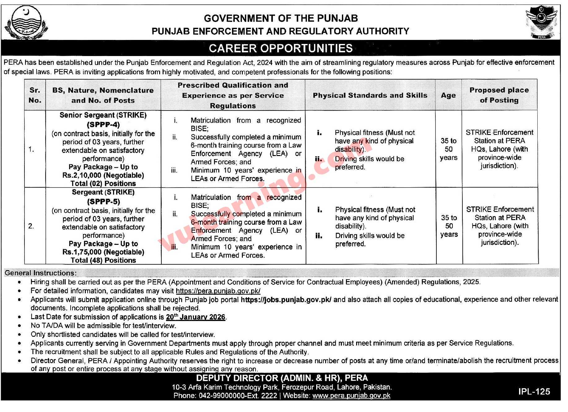 PERA Jobs 2026 Apply Online Punjab Enforcement & Regulatory Authority Job Ad shown on this page is taken from Express Newspaper on 06-01-2026