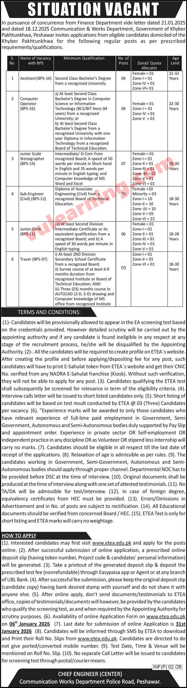 Communication & Works Department Jobs 2026 for Sub Engineers, Computer Operators, Assistants, Clerks & Others Job Ad shown on this page is taken from Express Newspaper on 05-01-2026