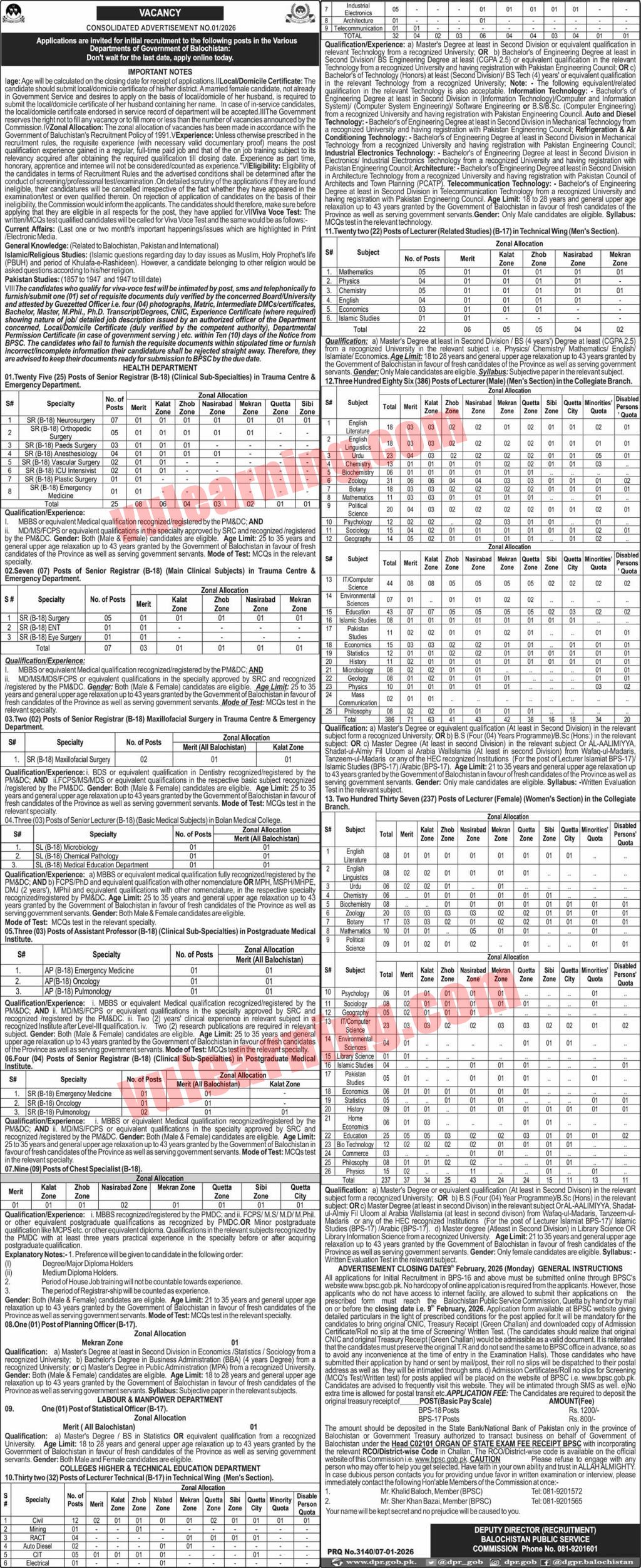 Public Service Commission Jobs 2026 Apply Online for Lecturers & Others Advertisement No. 01/2026 Job Ad shown on this page is taken from Express Newspaper on 08-01-2026