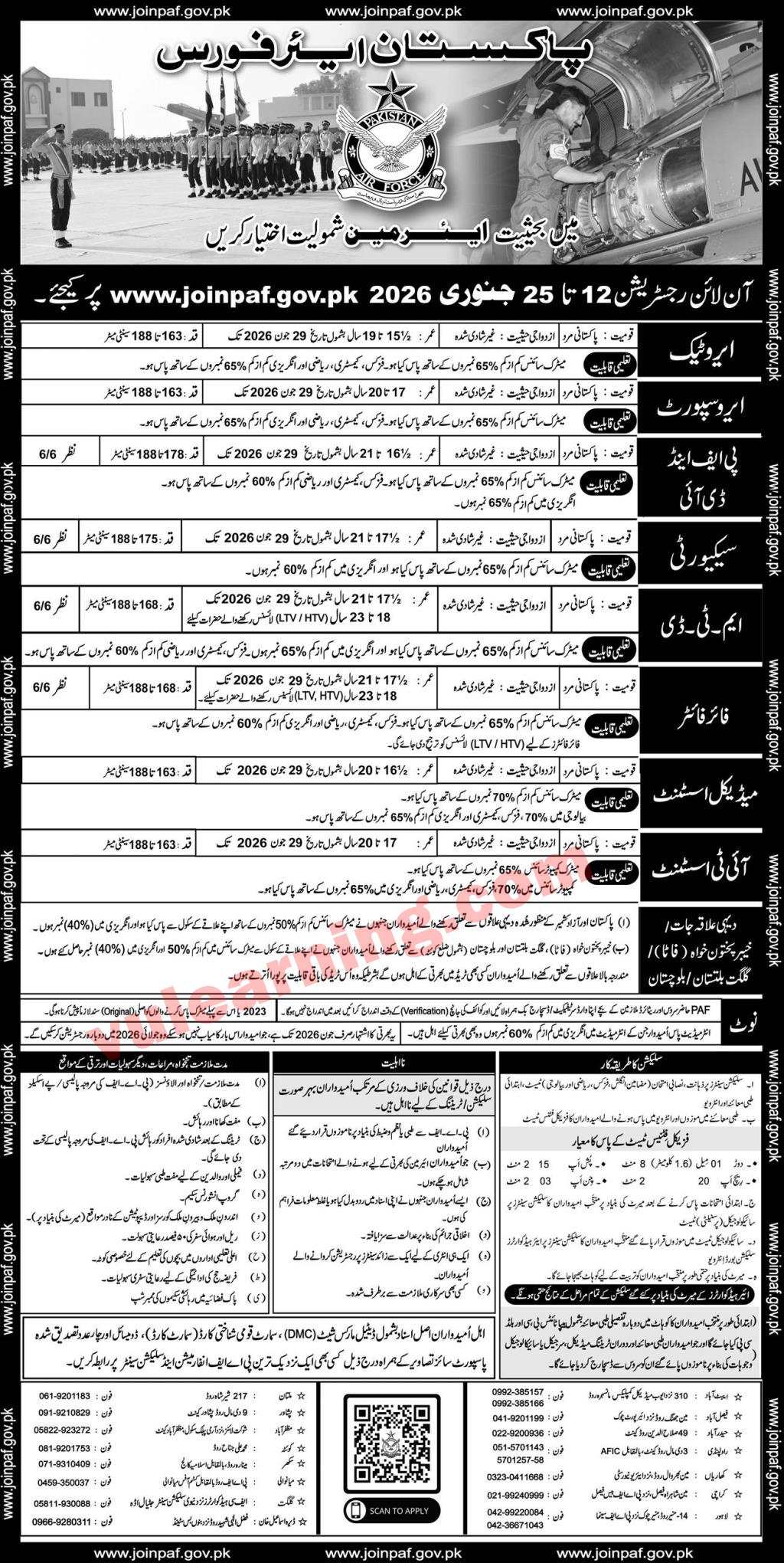 Advertisement of Pakistan Air Force Jobs 2026 Online Registration Join as Aero Tech / Support, PF&DI, Security, MTD, Fire Fighter, Medical & IT Assistant-295533