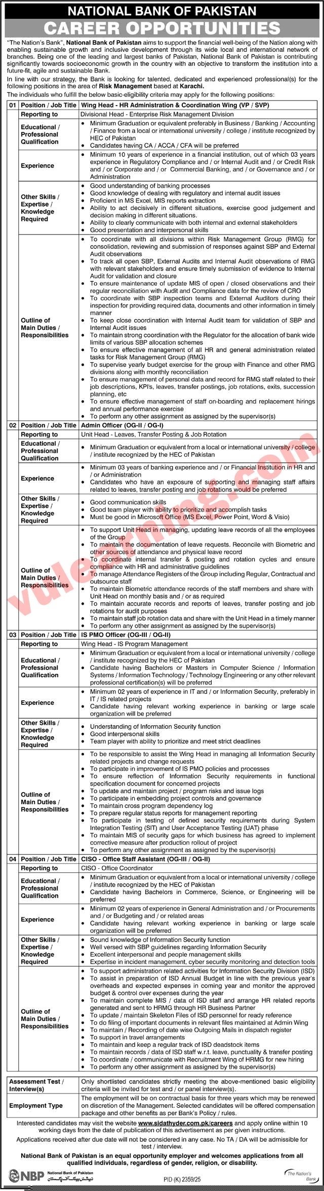 Advertisement of National Bank NBP Jobs 2026 Apply Online for Admin Officer, Office Assistant & Others Latest-295549