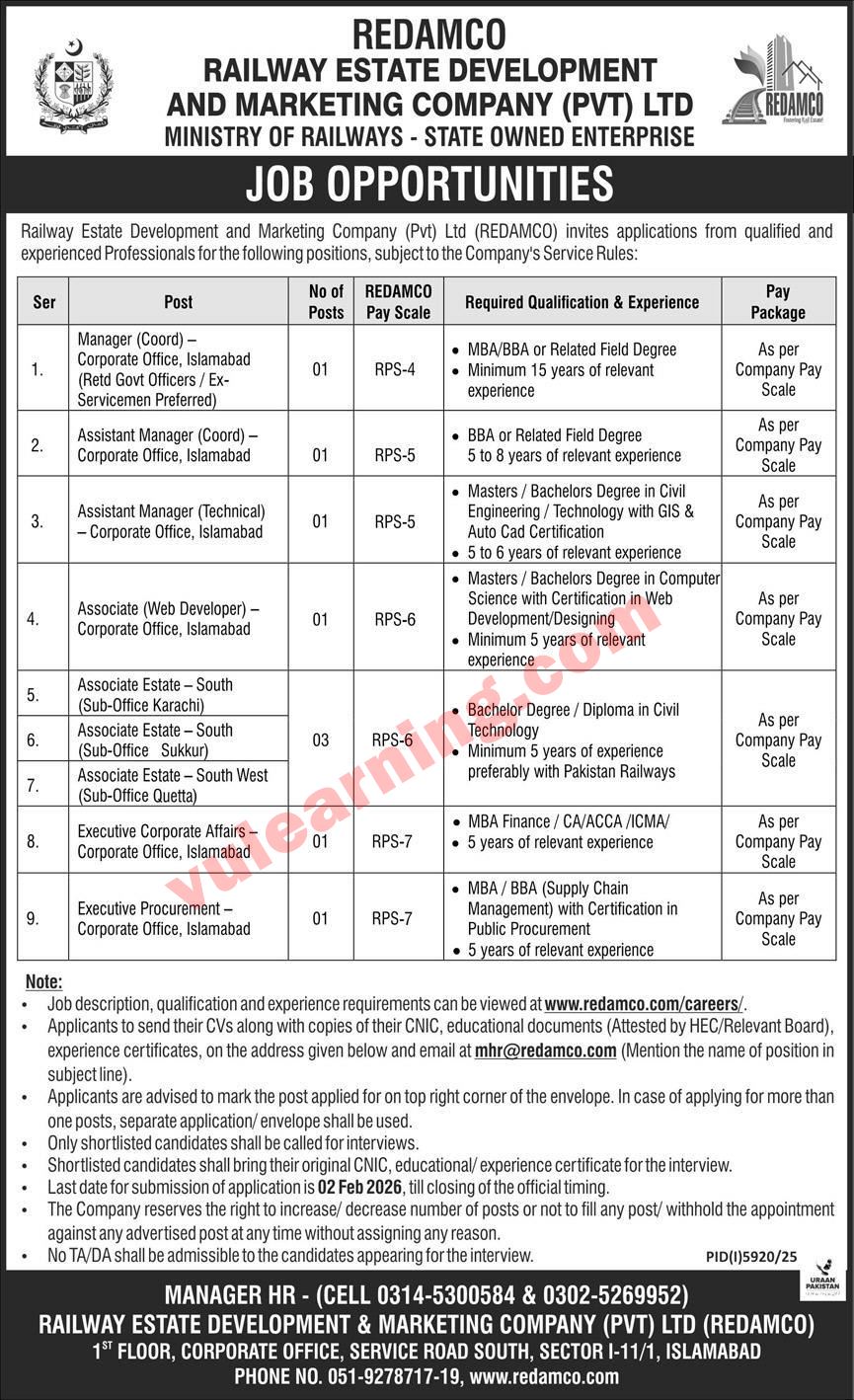 Railway Estate Development and Marketing Company Jobs 2026 for Assistant Managers, Associates & Others REDAMCO Job Ad shown on this page is taken from The News Newspaper on 18-01-2026