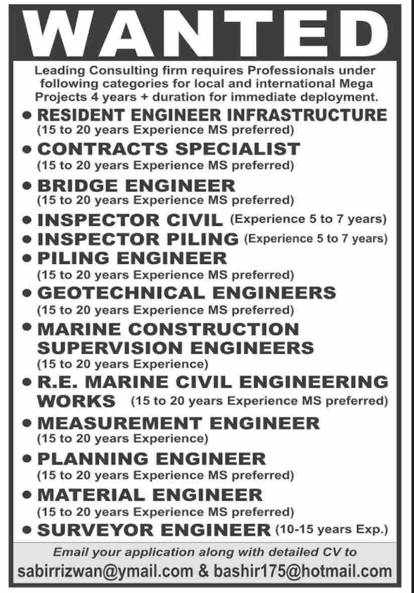 Consulting Firm Jobs in Pakistan 2026 for Civil Engineers, Planning Engineer & Others Latest Job Ad shown on this page is taken from Dawn Newspaper on 18-01-2026