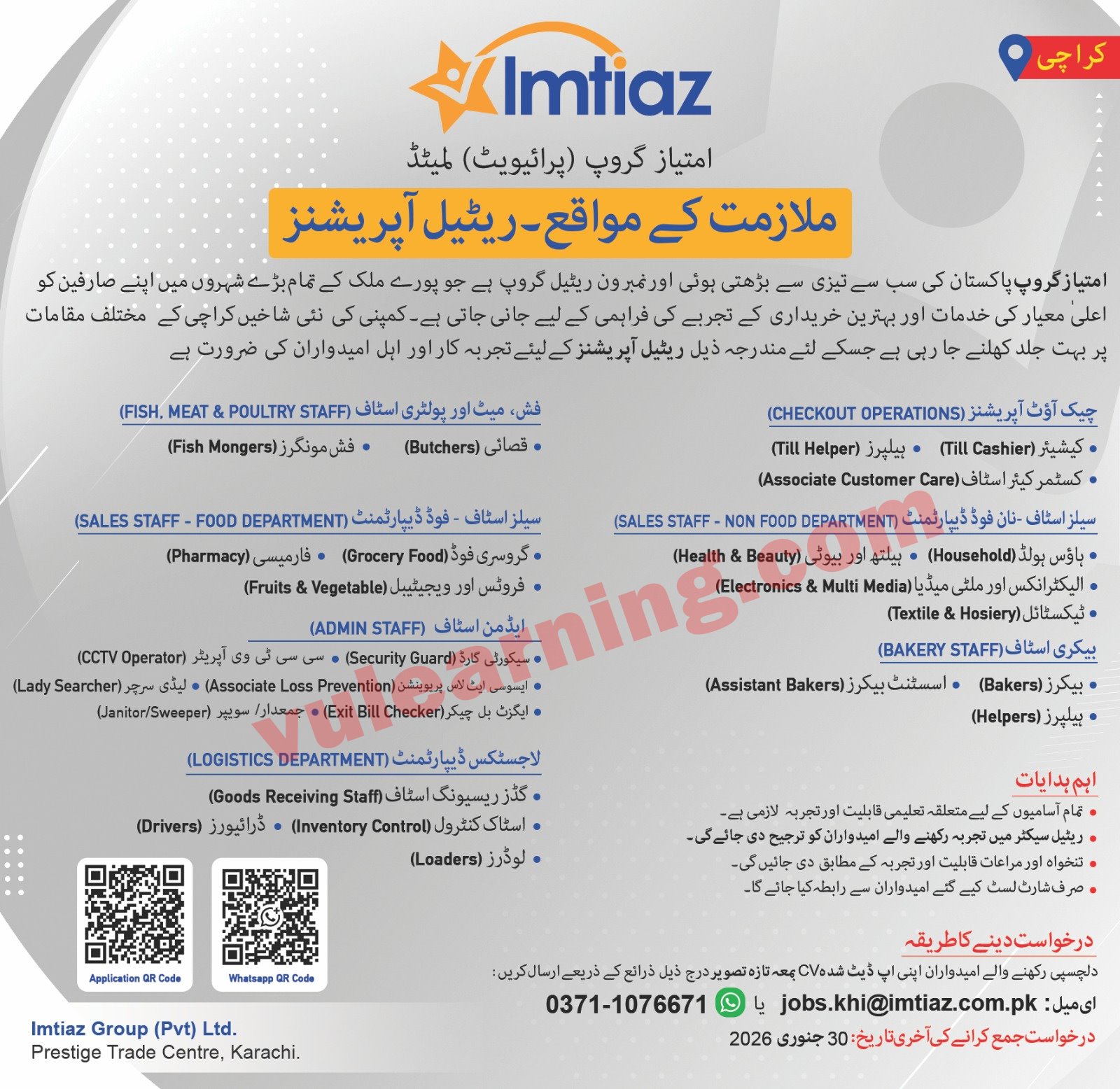 Imtiaz Group Jobs 2026 Apply Online for Cashiers, Loaders, Drivers, Sales Staff & Others Job Ad shown on this page is taken from Not in Newspaper Newspaper on 25-01-2026