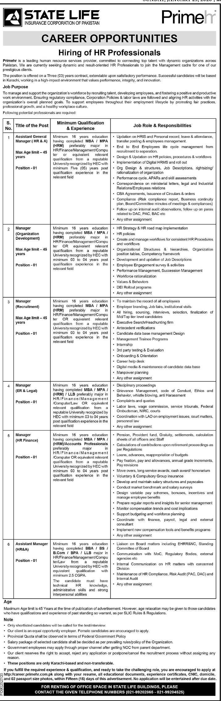 State Life Insurance Corporation of Pakistan Jobs 2026 SLIC Apply Online Job Ad shown on this page is taken from Express Newspaper on 25-01-2026