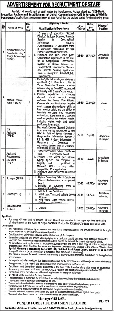 Advertisement of Forest Department Punjab Jobs 2026 Apply Online Vacancies Advertisement-295634