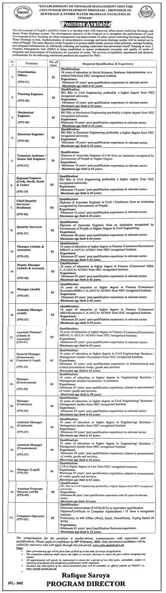 Advertisement of Punjab Municipal Development Fund Company PMDFC Jobs 2026 Apply Online-295636