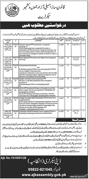 Advertisement of Legislative Assembly Secretariat Jobs 2026 Government Vacancies Advertisement-295650