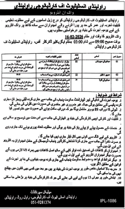 Rawalpindi Institute of Cardiology RIC Jobs 2026 for Guards, Sweepers & Supervisor Walk-in Interviews Job Ad shown on this page is taken from Dunya Newspaper on 30-01-2026