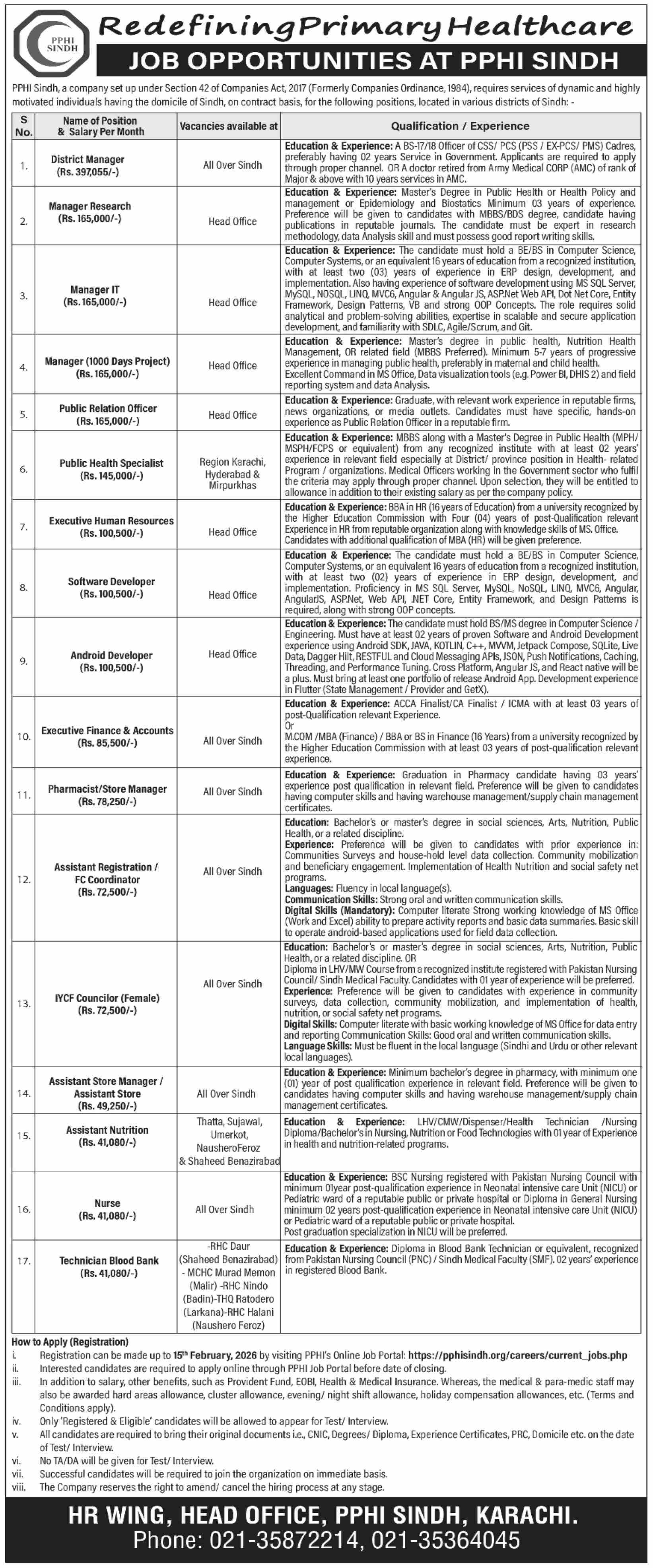 Advertisement of PPHI Sindh Jobs 2026 Apply Online for District Managers, Pharmacists, Nurses, Technicians & Others Latest-295704