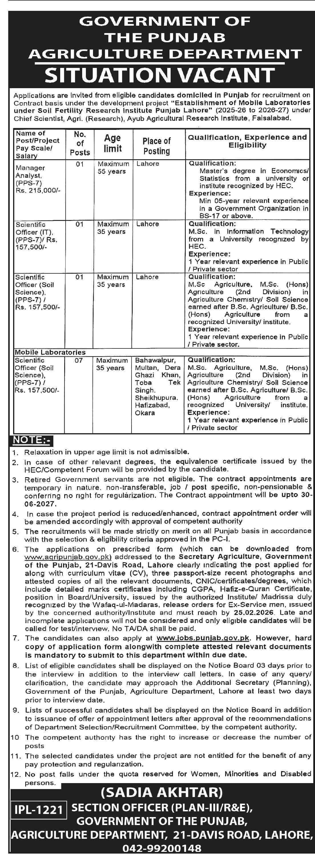 Advertisement of Punjab Agriculture Department Jobs 2026 Apply Online for Scientific Officers & Manager Analyst -295788