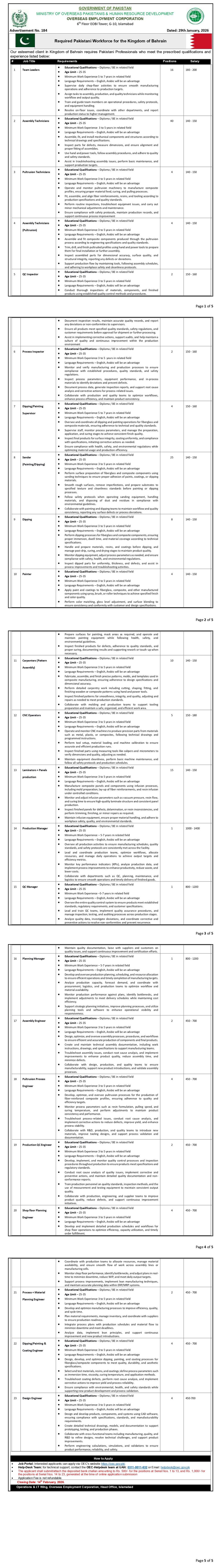 Bahrain Jobs 2026 for Pakistani as Engineers, Laminators, Technicians, Sanders, Carpenters & Others Apply Online Via OEC Job Ad shown on this page is taken from Not in Newspaper Newspaper on 04-02-2026