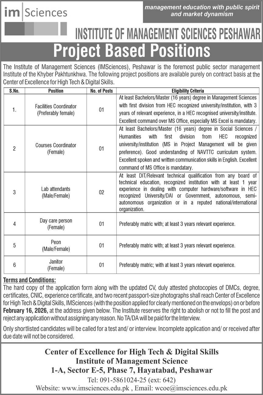IMSciences Peshawar Jobs 2026: New Project-Based Positions at Center of Excellence Job Ad shown on this page is taken from Express Newspaper on 05-02-2026