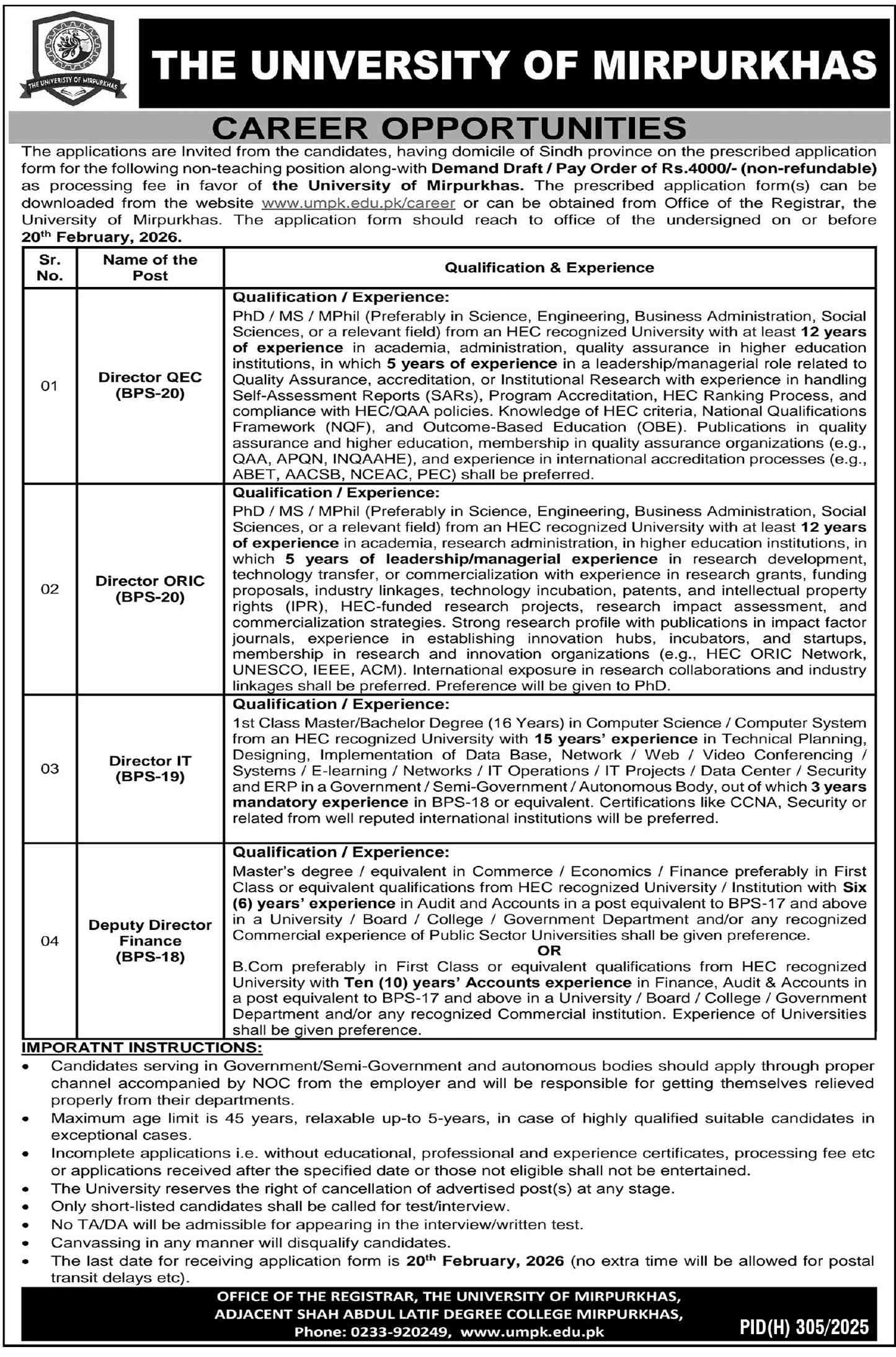Advertisement of The University of Mirpurkhas Jobs 2026 for Non-Teaching Staff Application Form-295804
