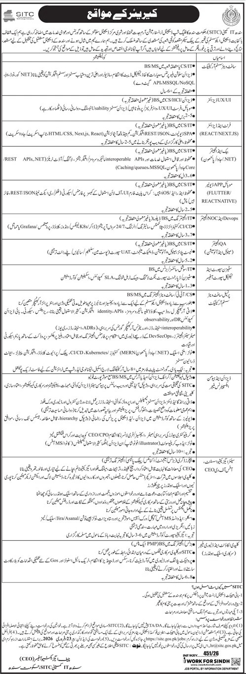 Advertisement of SITC Jobs 2026 Apply Online Sindh IT Company | Government of Sindh-295807