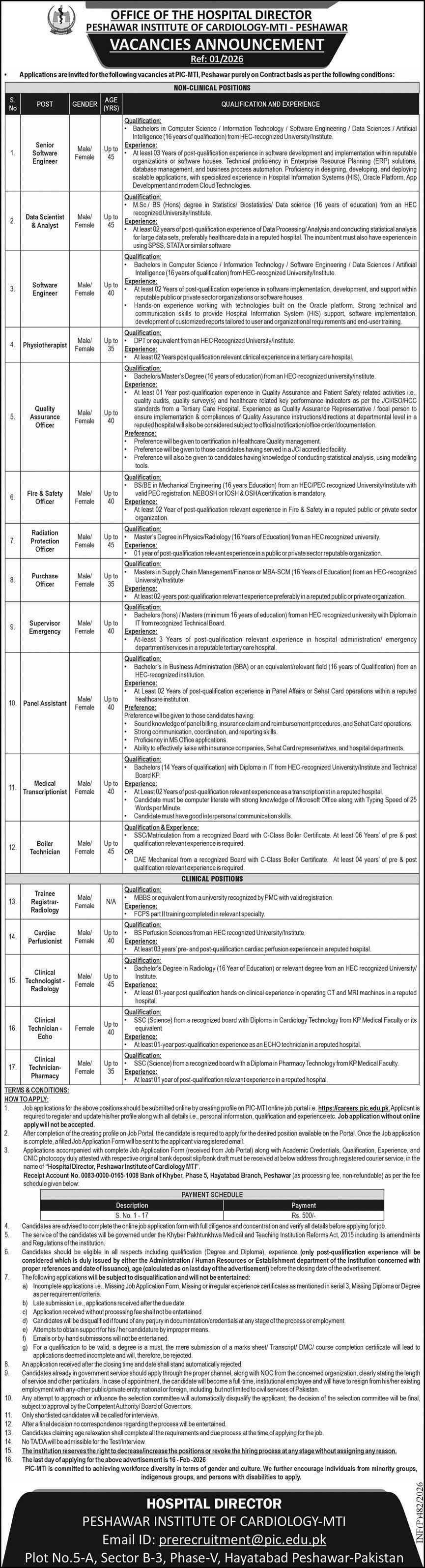 Peshawar Institute of Cardiology PIC-MTI Peshawar Jobs 2026 Apply Online Job Ad shown on this page is taken from Express Newspaper on 31-01-2026